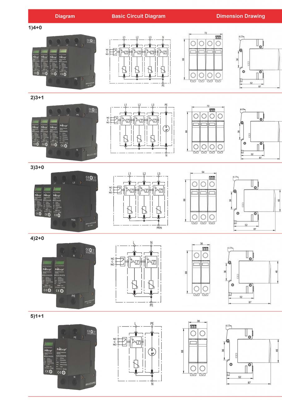 | BPS12.5V/180-S/4P | 4 | 4 x BPS12.5V/180-S | Three phase 4W+G | 180Vac | 12.5kA | L/N-G: 1.0kV | 1 |