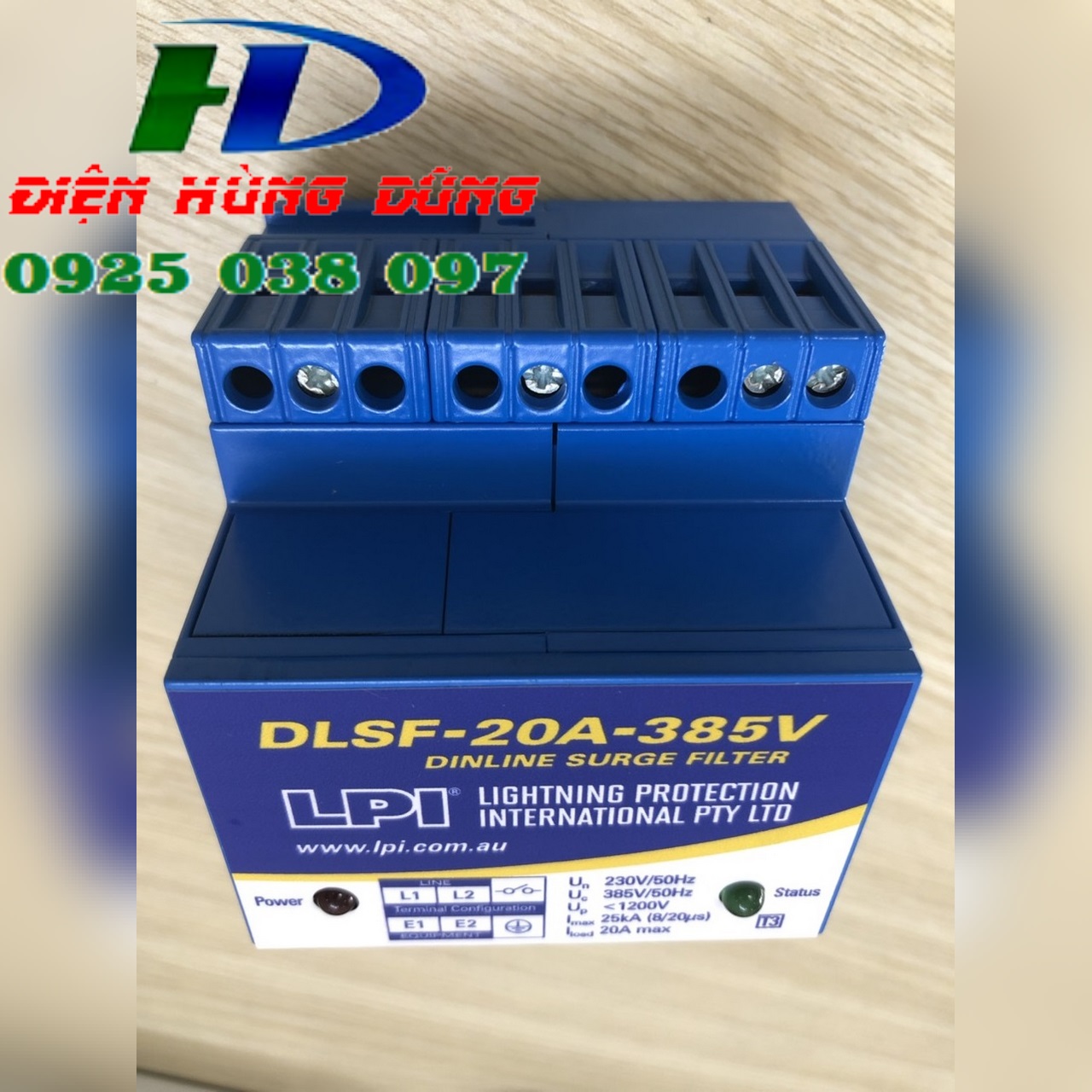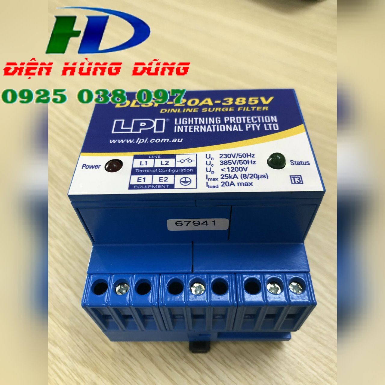 Thiết bị cắt lọc sét 1 pha DLSF-20A-480V 20A lắp nối tiếp CB, dòng tải tối đa 20A, điện áp định mức Un =277 VAC (Điện áp hoạt động tối đa Uc=480 VAC) Ph-N. Dòng cắt sét tối đa Imax = 25+25KA ; N-E Dòng cắt sét tối đa Imax = 25KA 8/20us, Cảnh báo: Hiển thị trạng thái làm việc bằng đèn báo; Có khả năng kết nối cảnh báo với các thiết bị cảnh báo bên ngoài thông qua tiếp điểm khô.