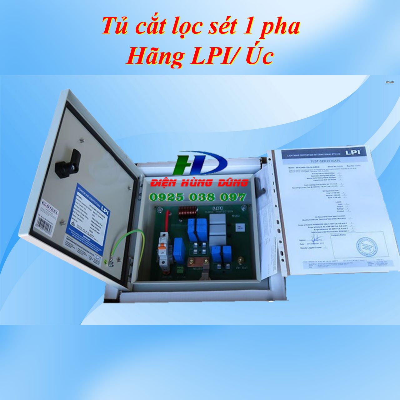Tủ cắt lọc sét LPI 1 pha cho đường nguồn hạ áp. Bảo vệ các thiết bị nhạy cảm với 03 mức bảo vệ Cắt sét sơ cấp, lọc sét, cắt sét thứ cấp.